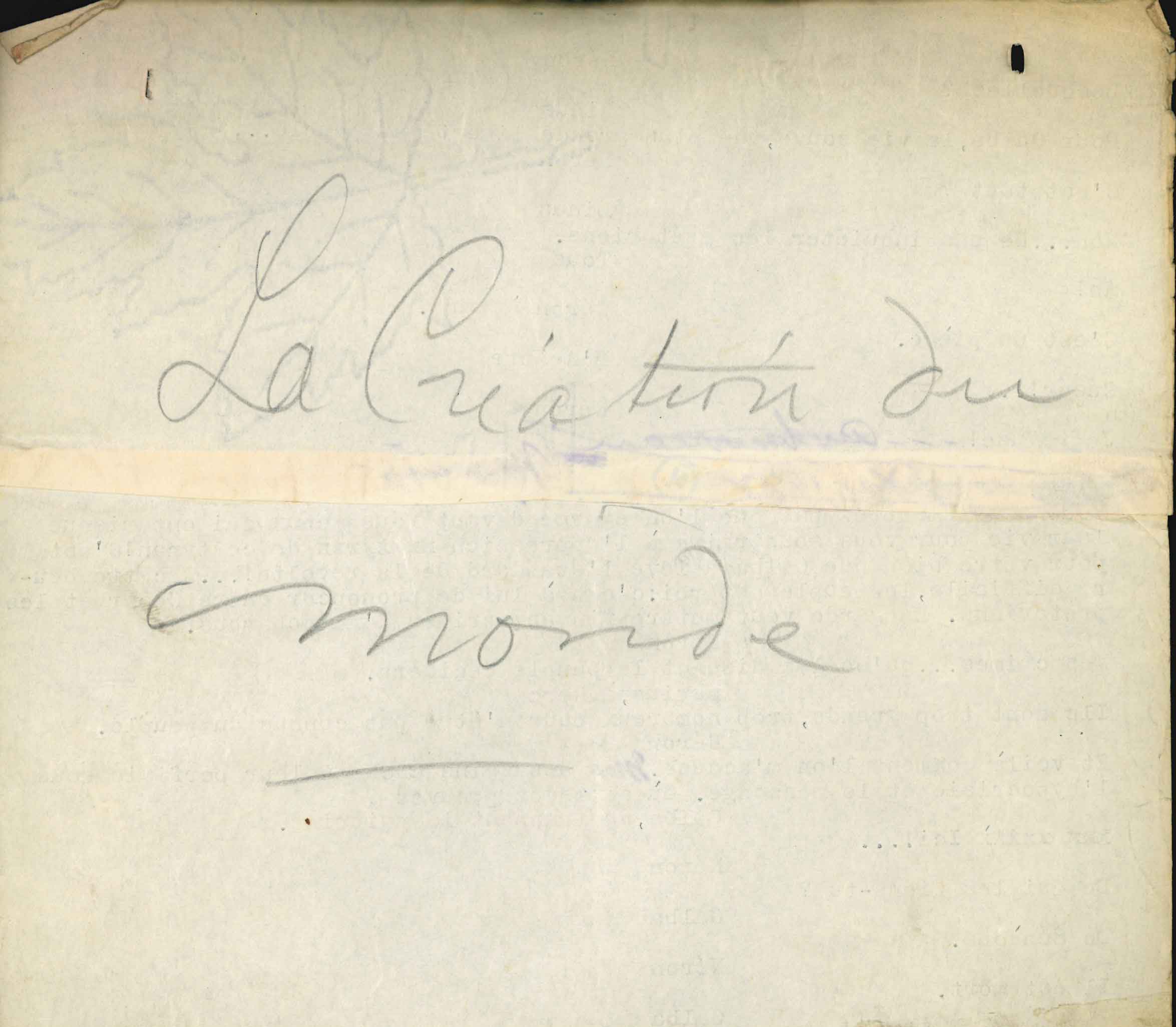 La création du monde – tapuscrit autographe