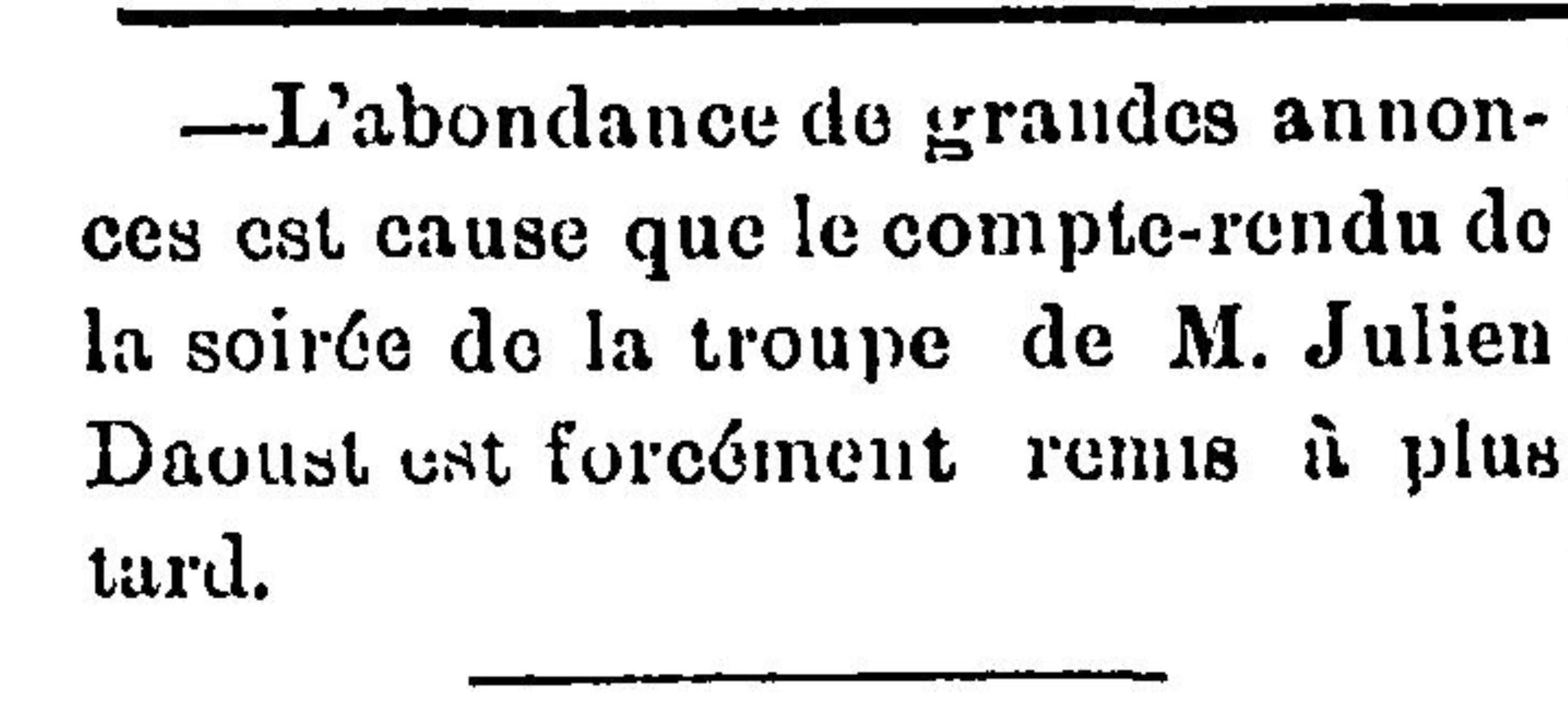 « Julien daoust à biddeford », La Justice (Biddeford, Maine) 13 août 1903, p. 02.