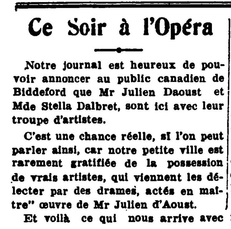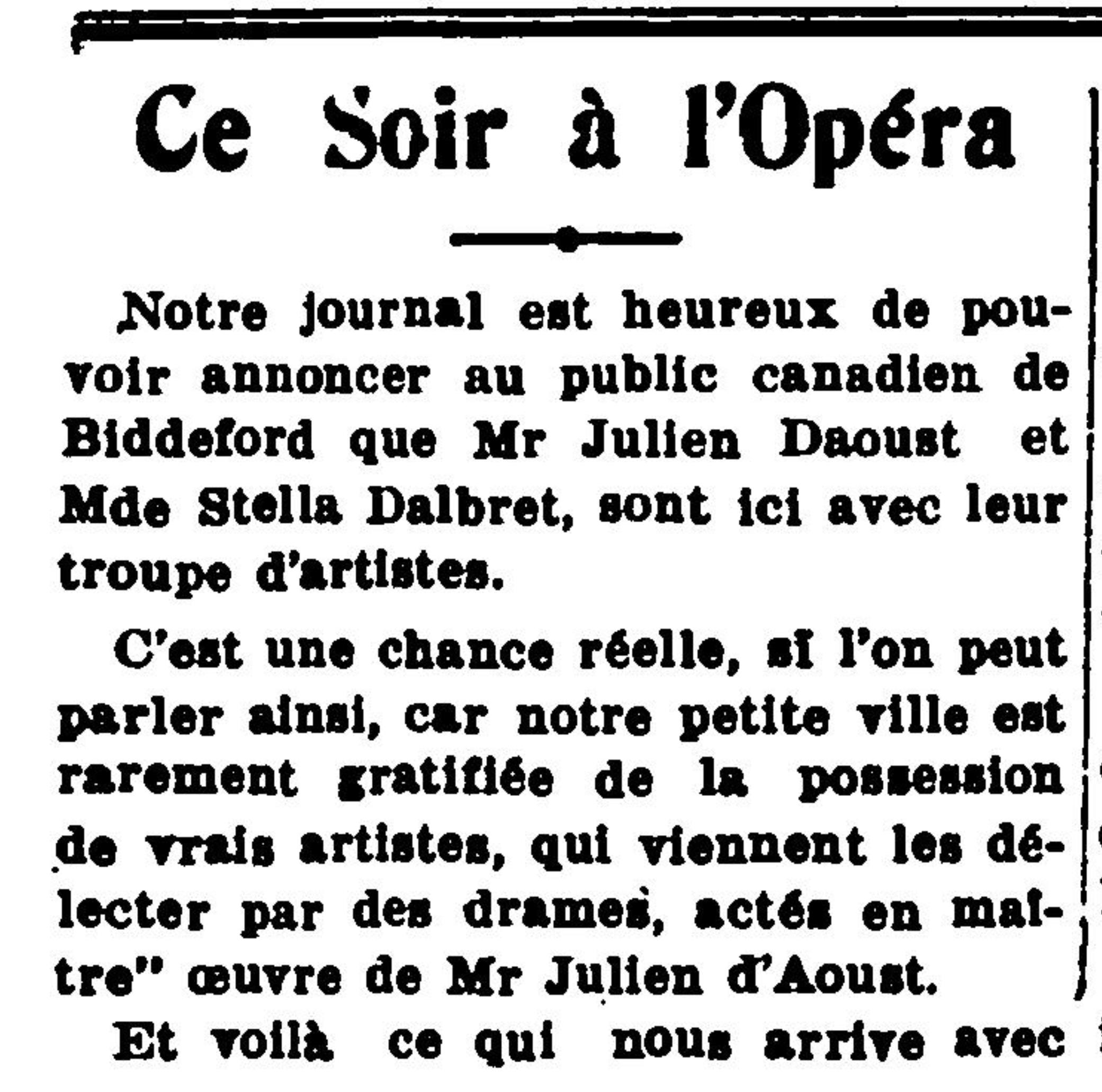« Ce soir à l'opéra », La Justice de Biddeford (Biddeford, Maine) 08 avril 1921, p. 03.