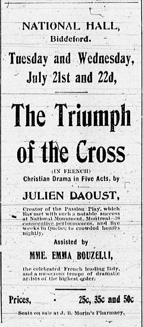 « Le triomphe de la croix à la salle nationale », Biddeford Daily Journal (Biddeford, Maine) 18 juillet 1903, p. 06.
